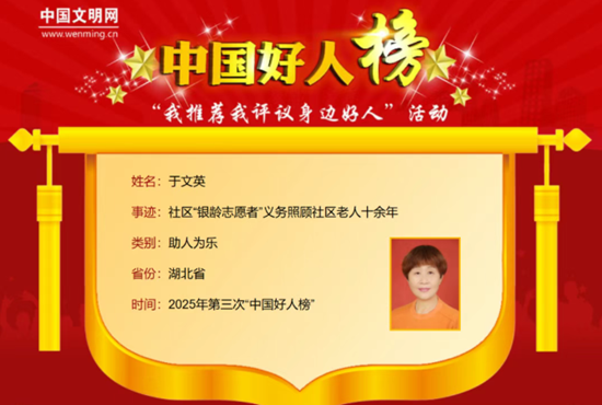 2025年第三期《好人榜》发布,“关键女孩”于文