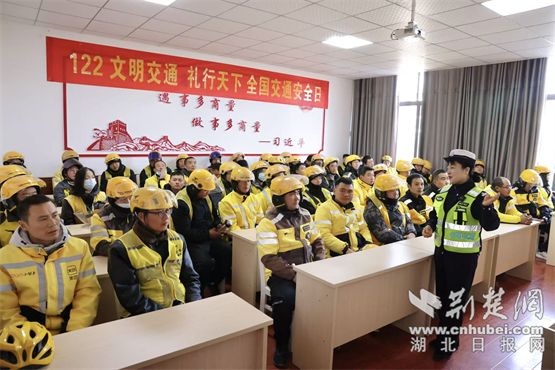 荆楚网(湖北日报)消息(来信:唐杰、陈莉、杜新义)在第十四个“全国交通安全日”之际,湖北省宜城市紫阳关社区举办了专题交通安全学习班。 11月27日,宜城市公安局交通大队为60余名送餐骑手打造了一场以“文明交通,适当尊重世界”为主题的宣传活动。通过案例预警和互动体验相结合,为街头跑步的骑手筑起一道安全防线。