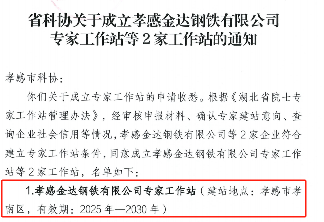 Jingchu.com(Hubei Daily)新闻(通讯员Chen Juan)最近,河北省科学技术协会宣布了“科学技术协会的通知,建立了两个工作站,包括小小的Jinda Steel Co,Ltd.的专家工作站”,Xiaogan Jinda Co,ltd。