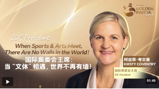 △视频:国际奥林匹克委员会主席Costy Coventry向2025年Golden Panda奖发了一条消息