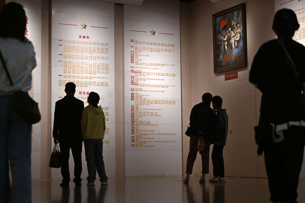 10月8日,游客在天津平津战役纪念馆瞻仰烈士名单。新华社记者 赵子硕 摄
